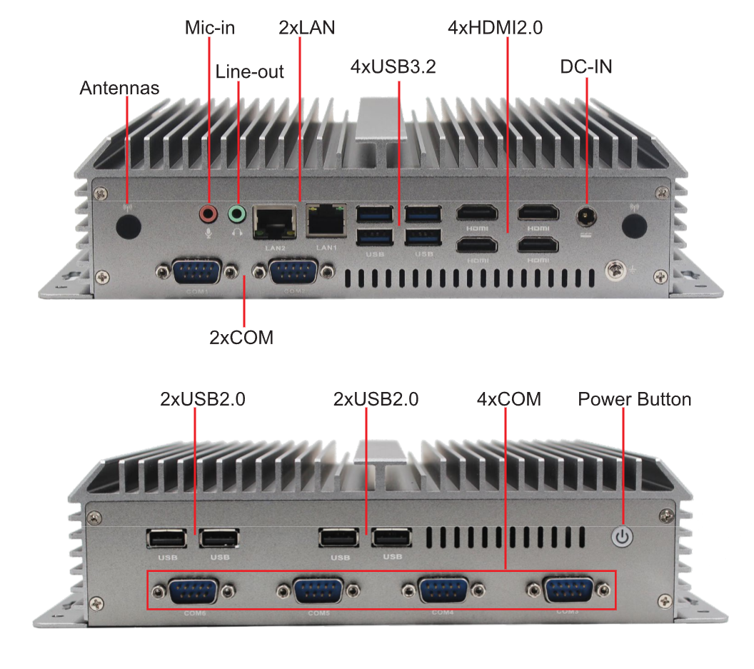 I/O Ports: 4xUSB3.2, 4xUSB2.0. 2xLAN, 6xCOM