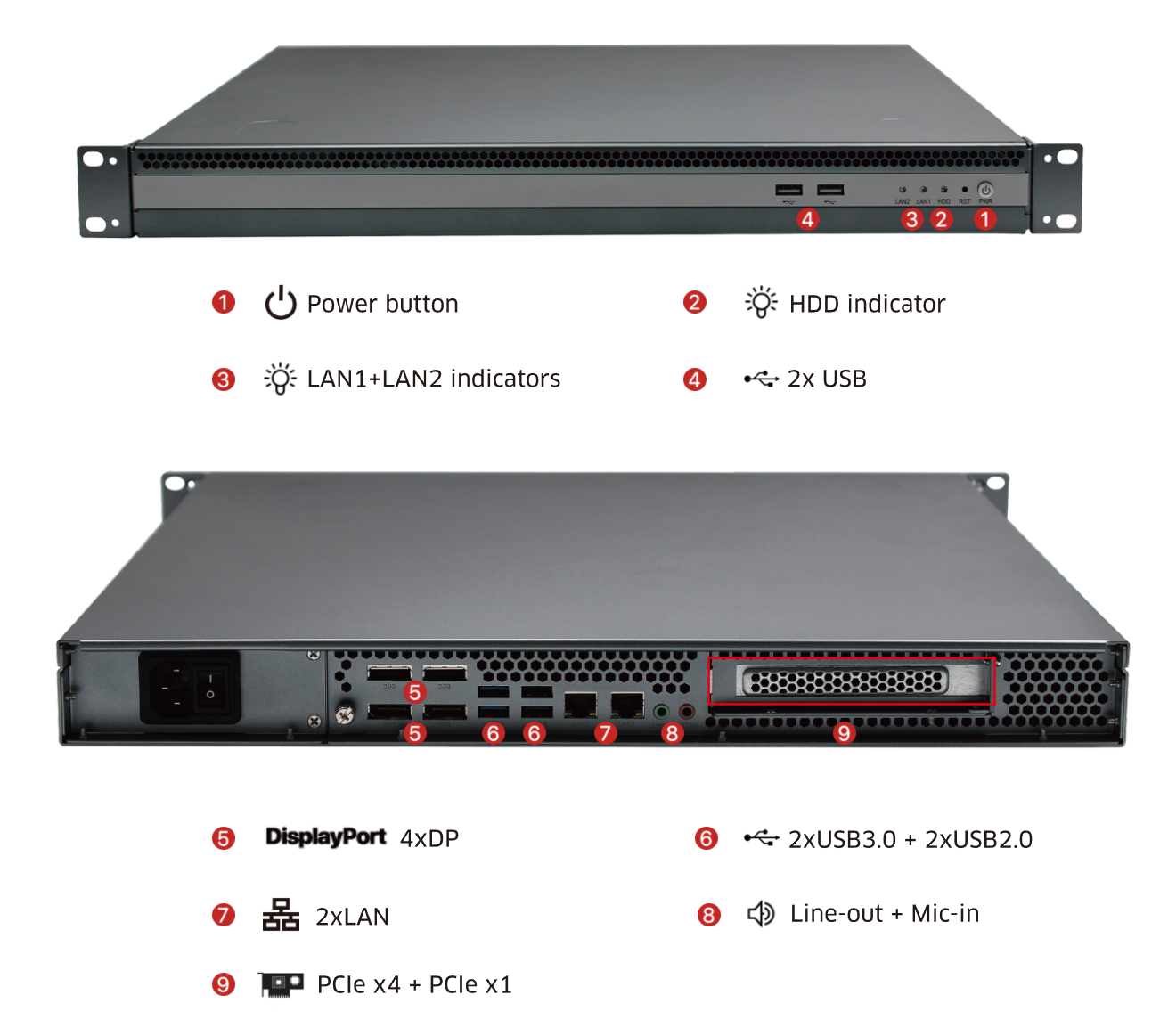 Standard 1U rack-mounted, 44.45mm depth