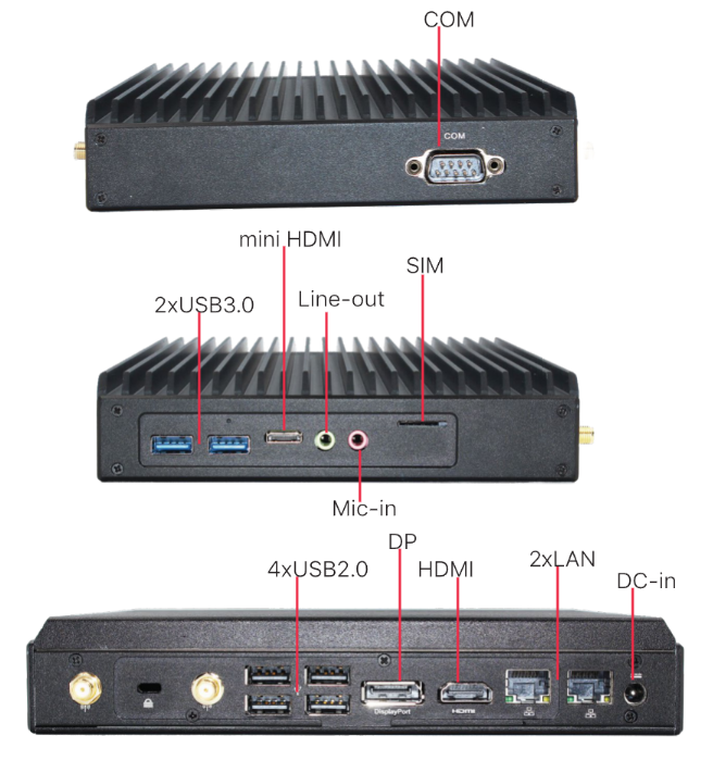 I/O Ports: 2xLAN, 1xCOM, 2xUSB3.2, 4xUSB2.0, SIM