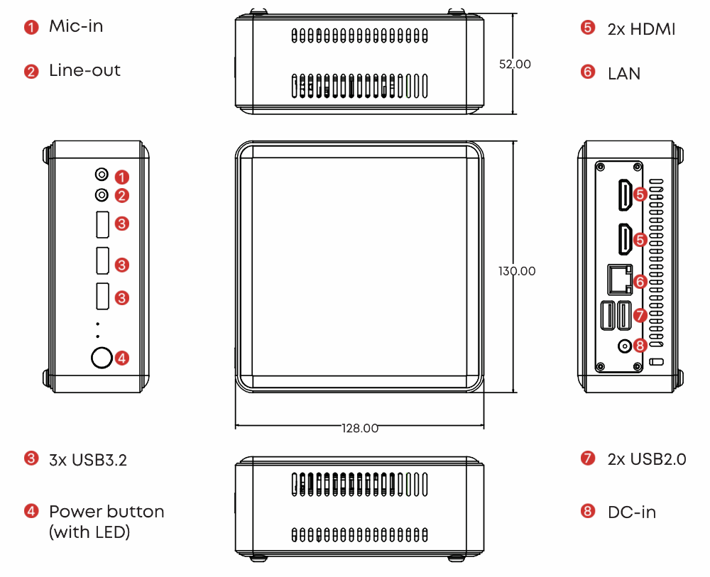 I/O Ports: 3xUSB3.2, 2xUSB2.0, 1xLAN, Audio