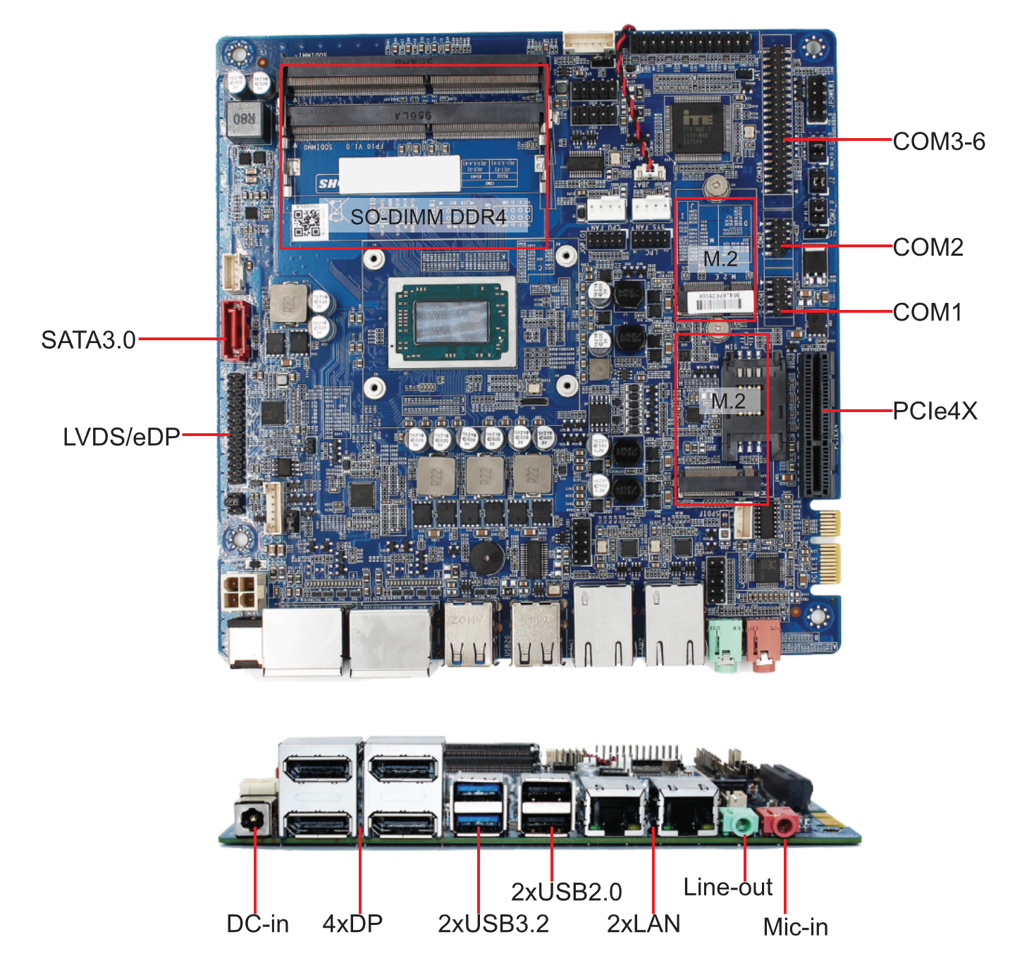 Expansion: PCIe 4X, PCIe1X, M.2 for WiFi