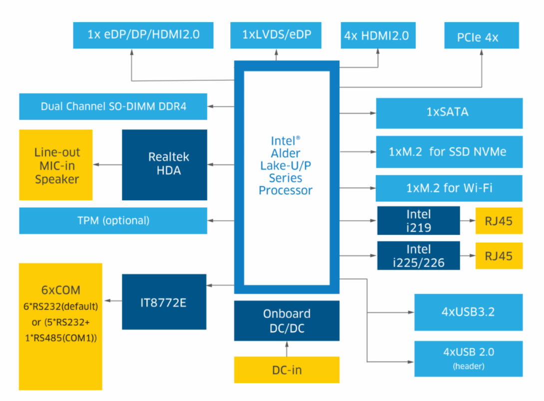 灵活扩展与全面接口:主板提供多种扩展接口,包括M.2、PCIe 4X和GPIO等,同时支持HDMI、USB、LAN等多种接口,满足您在各种场景下的连接需求。