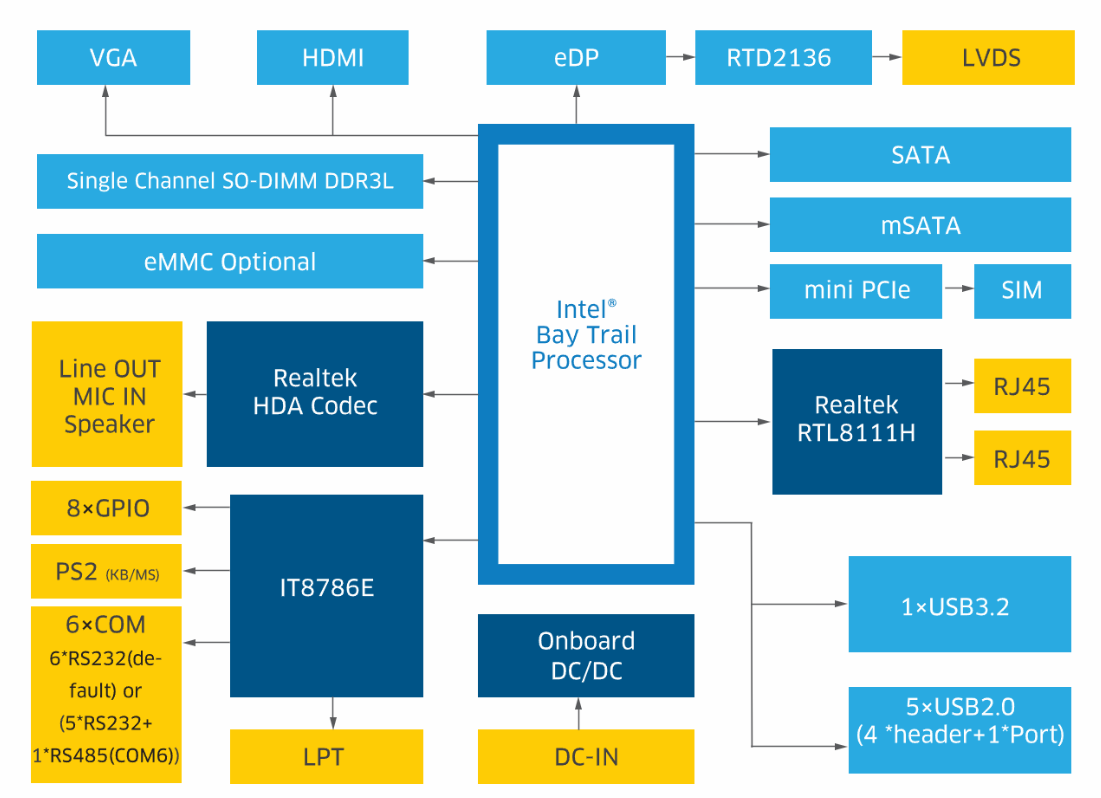 高效性能处理器:搭载Intel Bay Trail Celeron和Atom处理器,BYT60主板提供卓越的计算能力和多任务处理能力,满足各种复杂应用场景的需求。