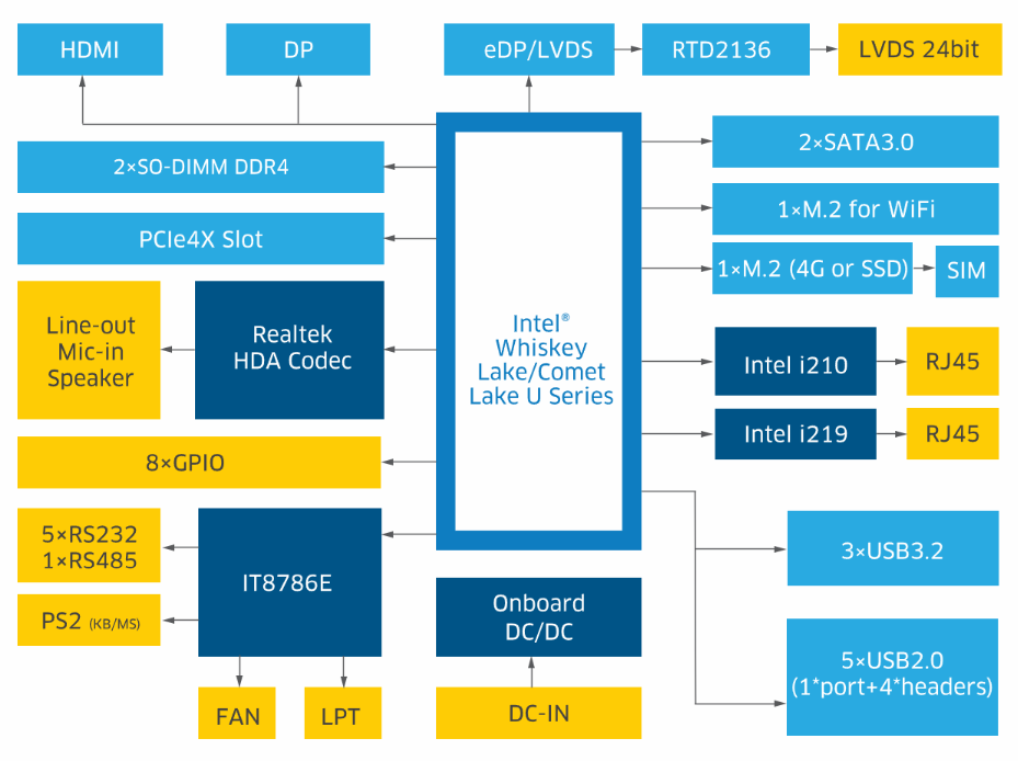 强大性能:搭载Intel Whiskey Lake/Comet Lake-U处理器,提供卓越的计算能力和稳定性能,满足各种高负载应用场景。